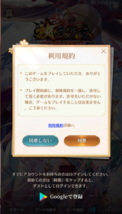はじめて放置少女を起動したときには、利用規約への同意が求められます。