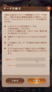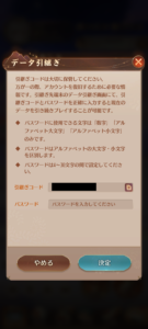 そうすると「引継ぎコード」とパスワードの入力欄が表示されます。