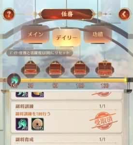 副将を選んだら訓練を押して、訓練書を1つ使うことでようやく任務達成です。