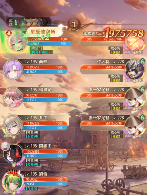 そして閻羅王がHPを削り続けられるよう、まわりの副将で攻撃を引き受けたり祝福付与などで耐久を上げるなどの手助けが必要です。
