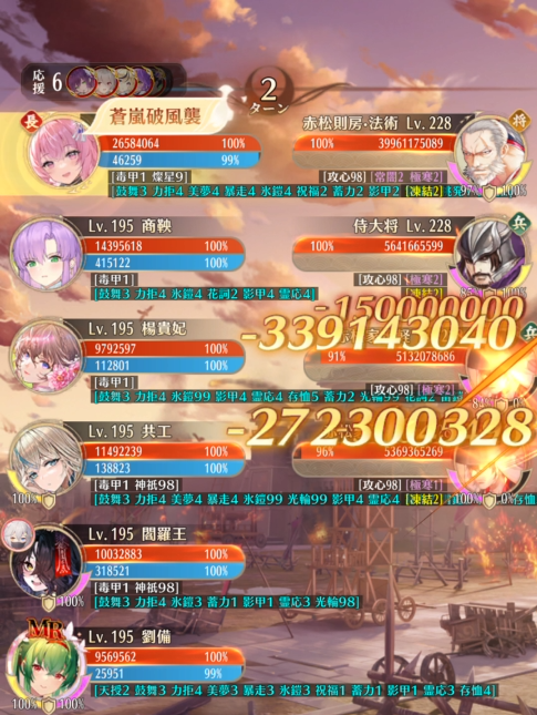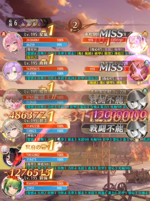 そのためスキル2の凍結延長を活用するには、他の副将(しかもスキル1限定)で凍結を付与してあげないといけません。