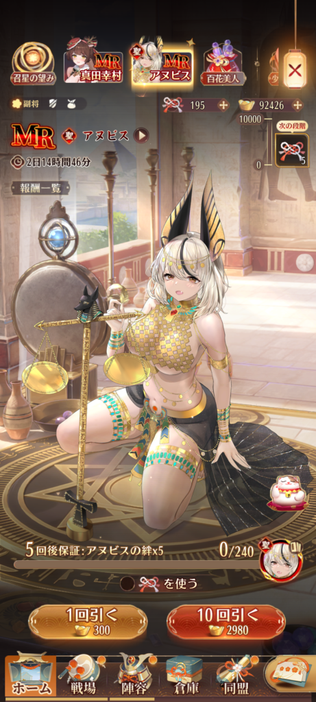 ほしい副将が来たら手当たり次第にガチャを引くだけで、簡単に貧乏になれてしまいます。