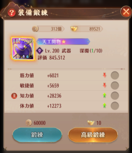 もう一つ育成に手間がかかる要素として「鍛造」があります。