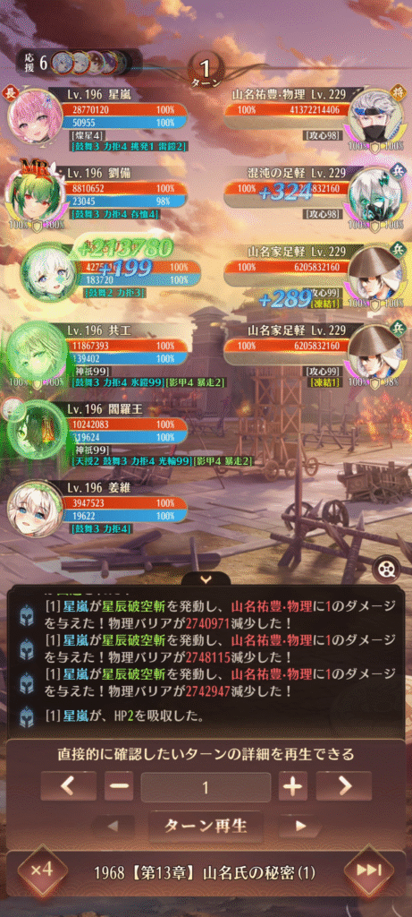 その時の鼓舞は、味方の攻撃力を162万も上昇させます。