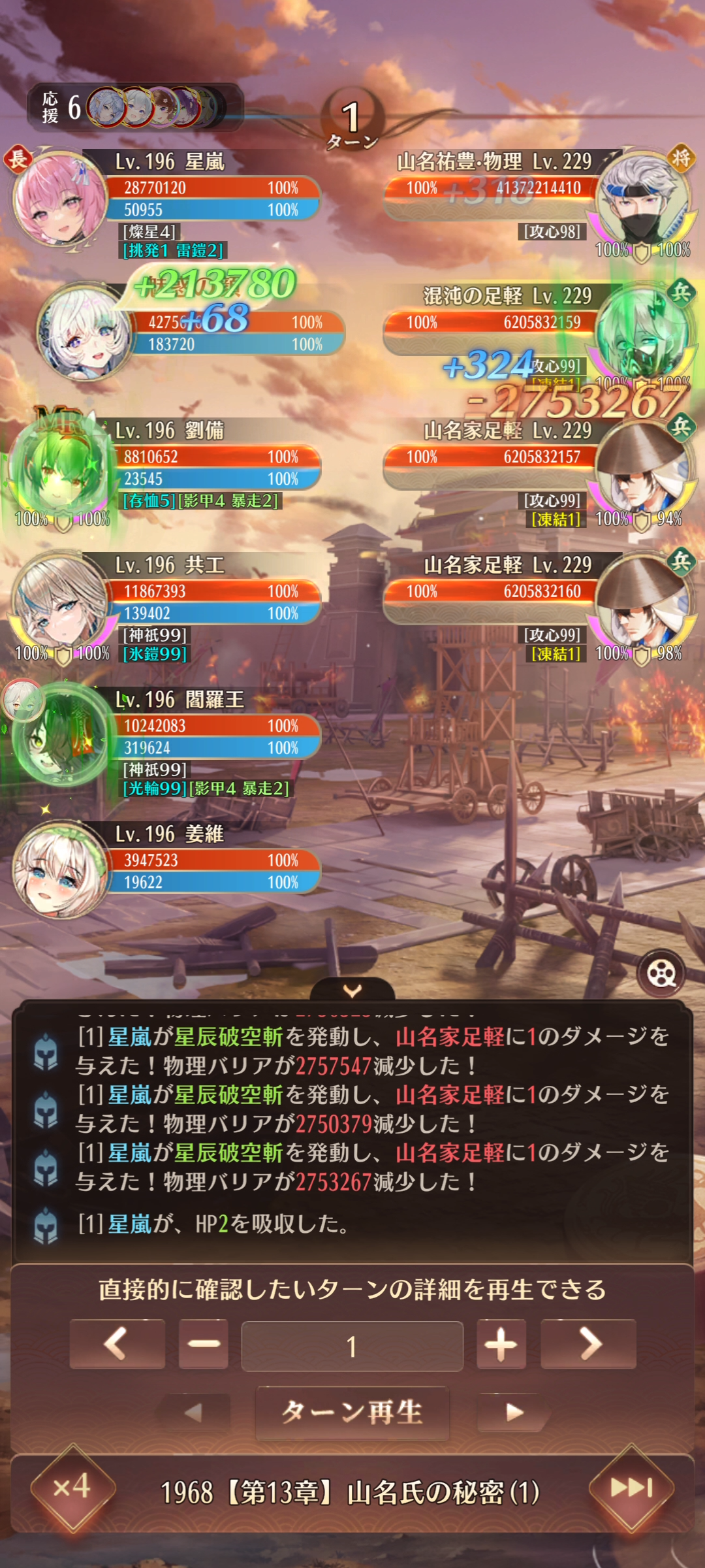 劉備の鼓舞と他の攻撃力バフだけで600万ほどの攻撃力となります。
