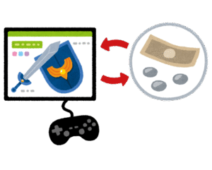 他のゲームでは獲得したアイテムをゲーム内で渡すかわりに現金を受け取るケースもありますが、